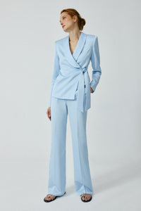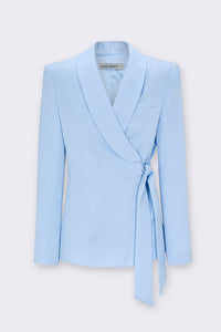 Bleis Madrid reedita en la colección SS25 el clásico N01 que la firma lanza en 2019. En esta ocasión, la hombrera se ajusta y baja, y se mantiene el lazo y se incorpora en la blazer. Una pieza que reinventa el clásico smoking con un giro contemporáneo y ultra femenino con una caída mucho más natural. Esta blazer de lino satén en azul cielo se anuda con una lazada lateral, aportando fluidez y carácter a cualquier look. Ideal para bodas de día, reuniones donde quieres marcar diferencia o cenas al atardecer con un toque sofisticado.