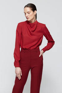Camisa drapeada cuello perkins cupro burdeos