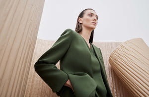 Silueta ovalada: Para realzar tu figura, si tienes caderas más anchas, ¡prueba a darle protagonismo a la parte de arriba! Blusas con hombreras, colores llamativos o estampados te ayudarán a crear una silueta más equilibrada. Abajo, opta por prendas lisas y oscuras que no ajusten demasiado como el pantalón de lana verde.