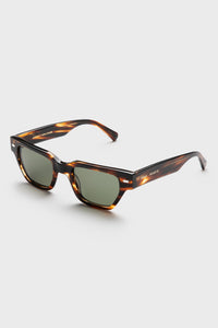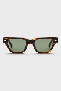 This straight lined frame combines carey tones to bottle green lenses. A versatile model with a distinctive style, a simply timeless piece. Also every model include both brand's logo to be able to instantly recognize the combination of innovation and handicraft in this collaboration.