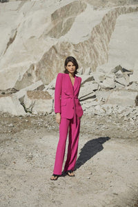 Pantalón de corte recto confeccionado en un crepe en color maquillaje de gran caída. Su patrón combina a la perfección elegancia y confort para lucirlos tanto en la ciudad como fuera de ella.