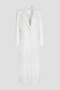 Abrigo sastre confeccionado en tweed crudo con pinceladas doradas. La firma se introduce en el evento nupcial a través de nuevas formas que rompen con los códigos tradicionales y se acercan a una novia Bleis Madrid elegante y sofisticada. Todas nuestras prendas están fabricadas en España.